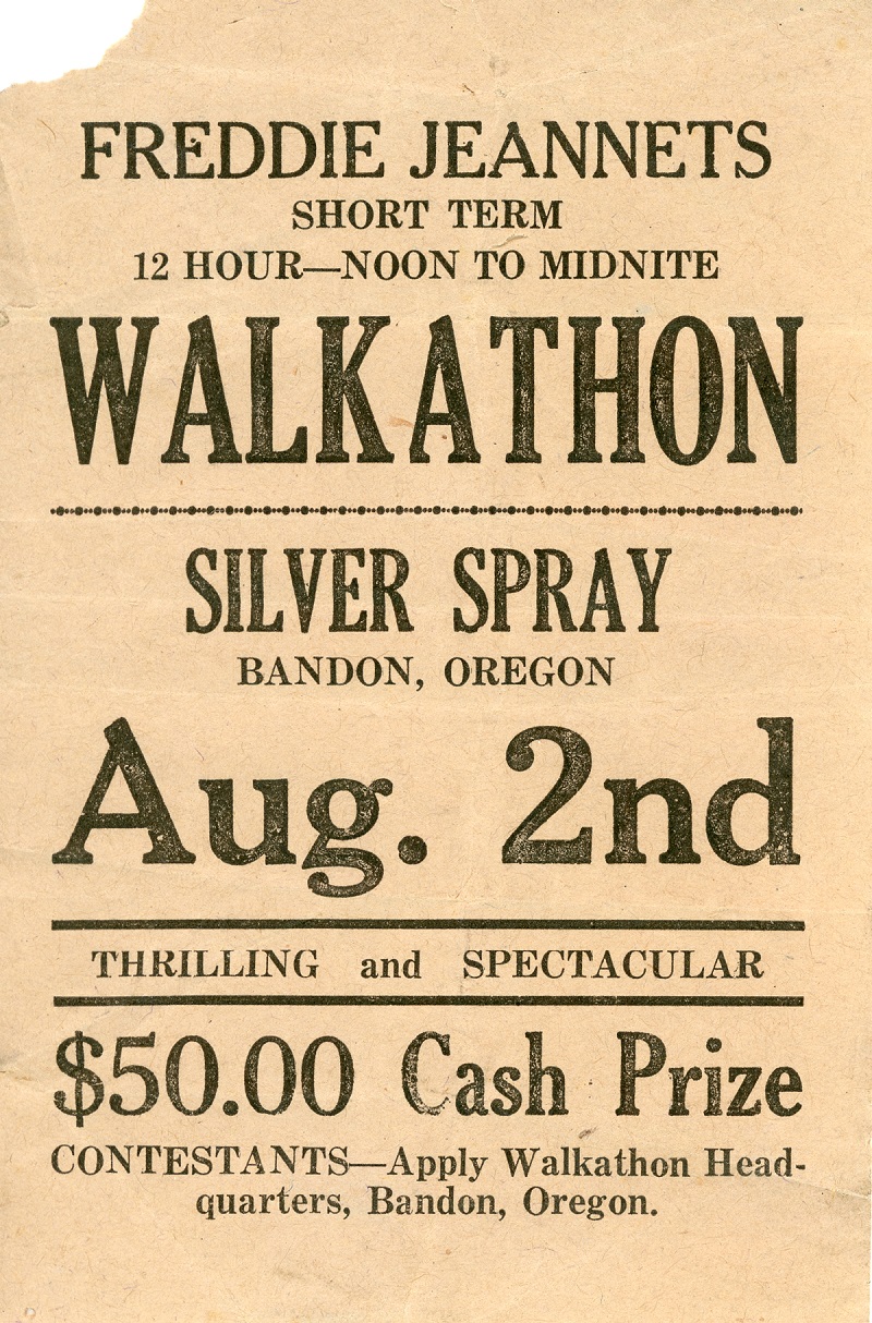 In preparing for the May opening of the new facility, Topping applied all his business acumen. For one thing, he set a precedent by sending his son Paul on a long trip through the southern counties distributing advertising material; Topping himself would later undertake such trips, capitalizing on his family connections and reputation. Also, he showed an awareness that people also came to dance pavilions for other reasons than dancing, and he began a tradition of offering door prizes and floor shows to diversify the experience. This time, he offered prizes of agate jewelry fashioned by his son Paul, an accomplished jeweler specializing in agates. Finally, he carefully tied the Silver Spray pavilion in with Bandon’s other tourist attractions: “Many will come for the week. . . to enjoy the beach and Wecoma Baths as well as . . .to dance.”